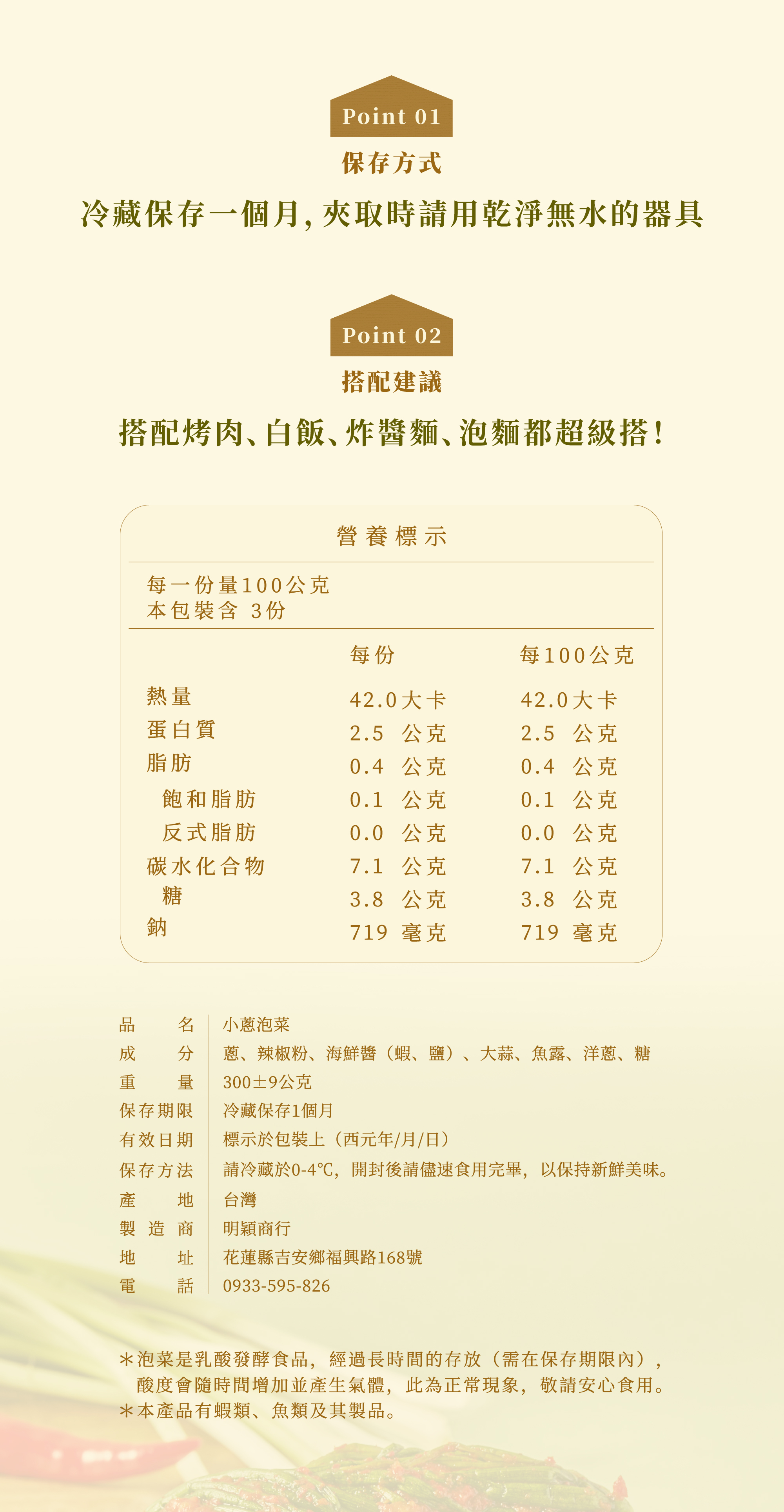 貼心提醒:泡菜為發酵食品,保存越久酸度越高、產生氣體皆為正常現象唷!